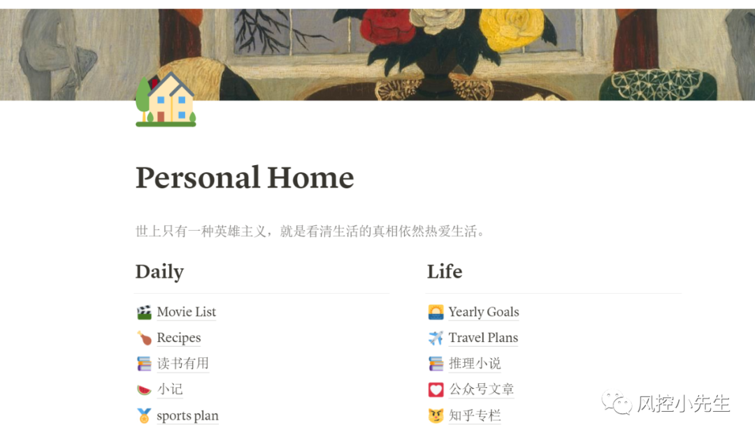 除了工作,对于生活也是相当需要规划的,我建立了下面这样的界面。