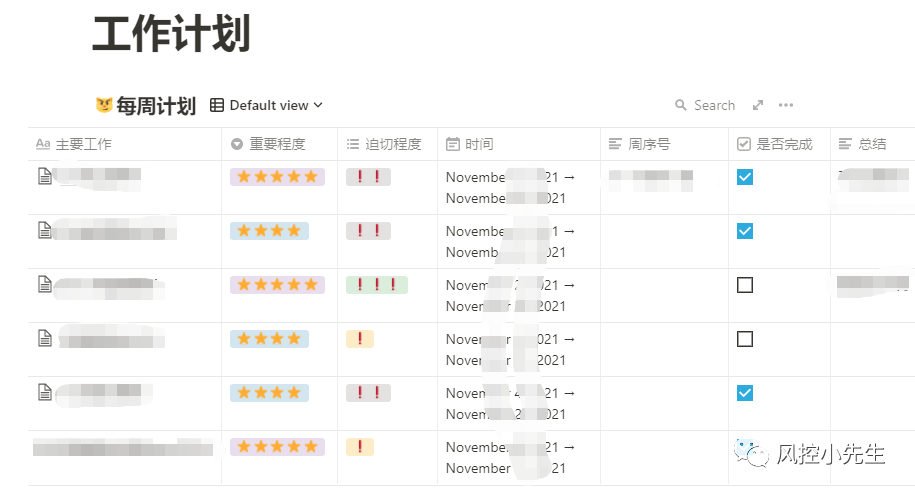 在每一个页面里也可以自己设计不同的样式,比如,我常用的工作计划样子就如下所示。