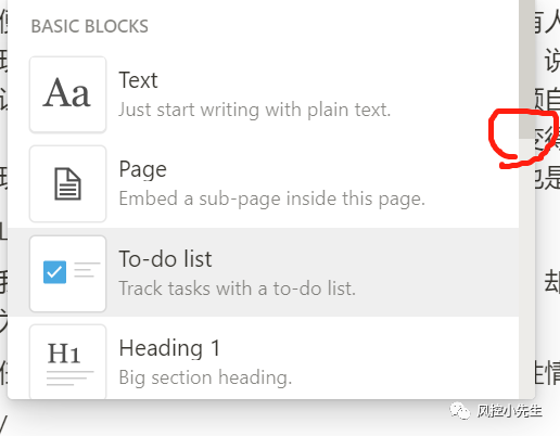 其实,关于Notion还有很多待发现的功能哦,因为它支持的格式也非常多,完全可以媲美Markdown,每一个【单元】都可以随意创建为一个【对象】,这个对象可以是page、tabel、text等等,如下图展示了部分对象。仔细一想,这不就是Python的“万物皆为对象”的概念吗?你喜欢Python,就会喜欢Notion。