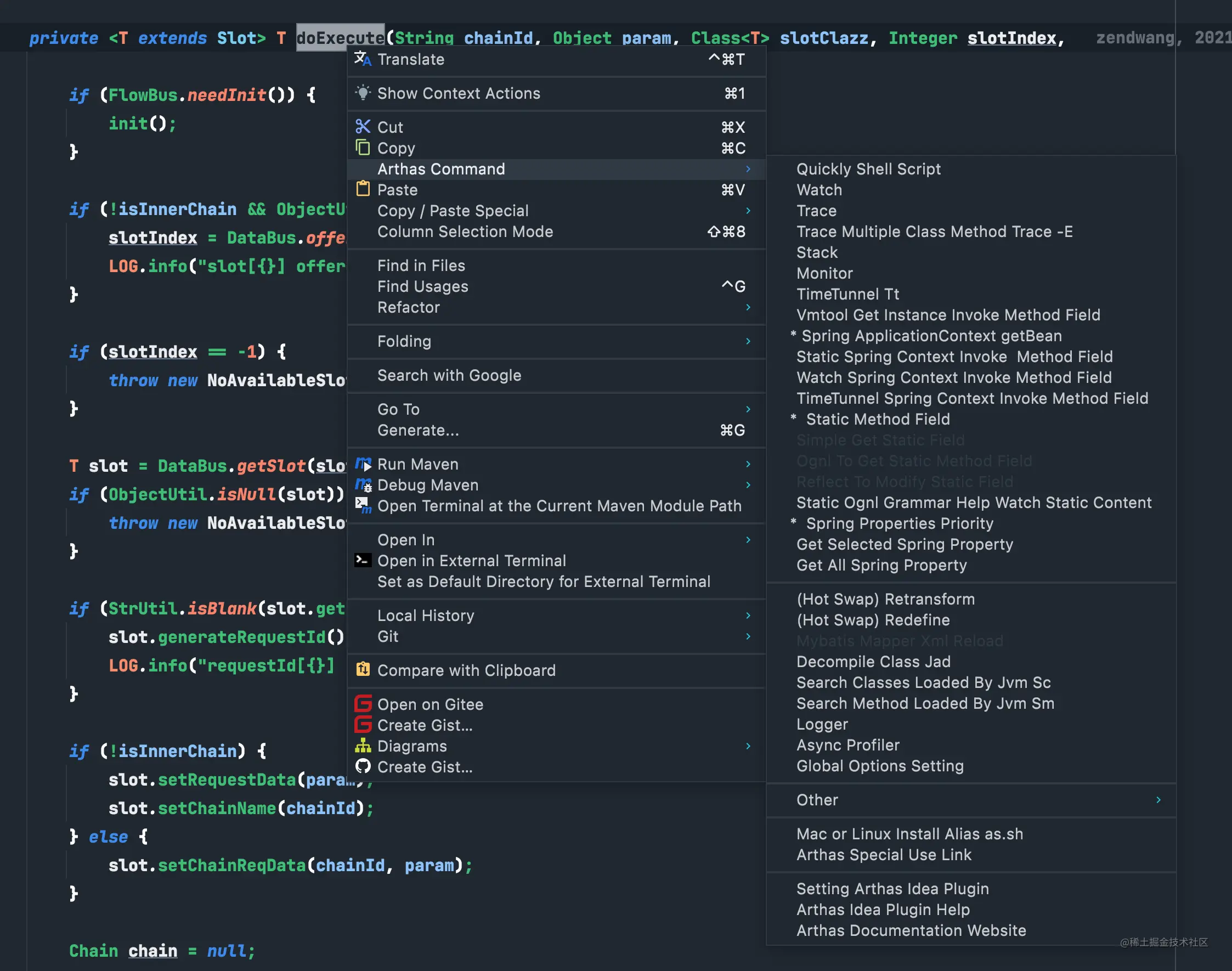 但是每次需要输入很长一段命令,有些命令遗忘的话,还要去翻看Arthas的命令文档,然后还要复制代码中类或方法的全路径,很是不方便。而这款arthas的插件就可以让你完全摆脱这些苦恼。生产力大大提升。