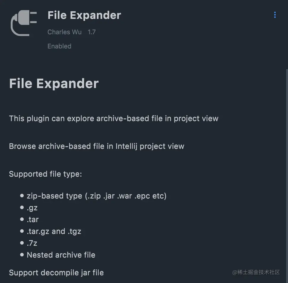 有了这个插件,有些小伙伴平时用的Jad工具就可以扔了,它能在Idea里直接打开Jar包,并且反编译代码查看。甚至于能打开tar.gz,zip等压缩格式。