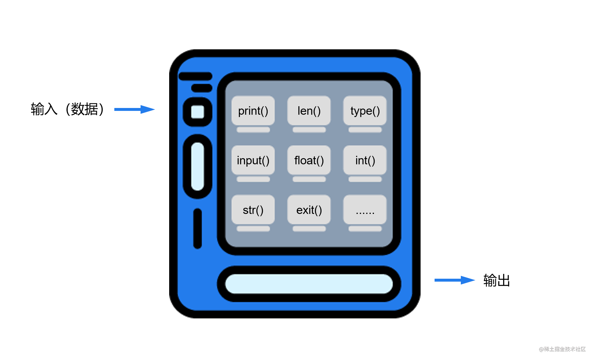 这就像自动贩卖机,只不过贩卖机是喂点钱,吐出来一些吃的喝的用的东西;而Python函数则是喂各种各样的数据,吐出来各种各样的功能。