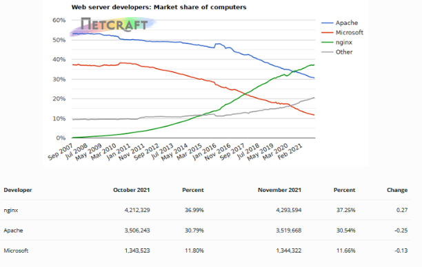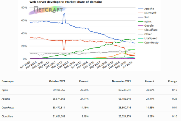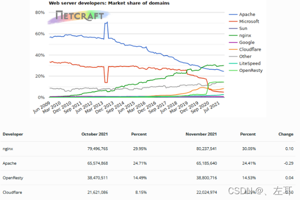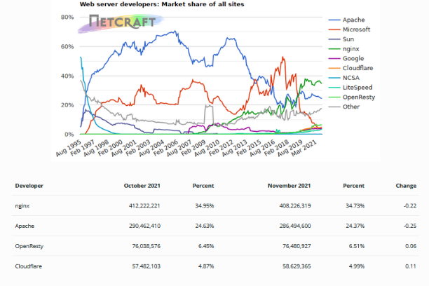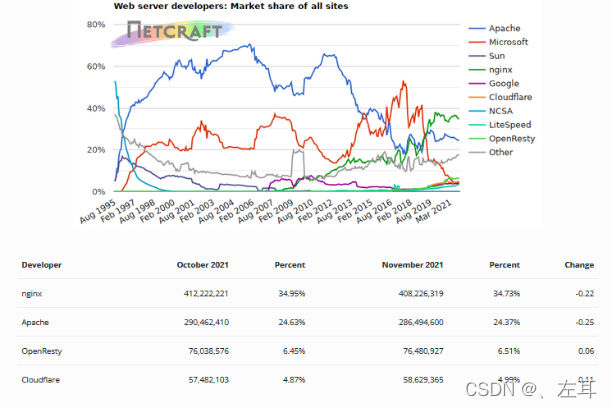 参考链接:October 2021 Web Server Survey | Netcraft News