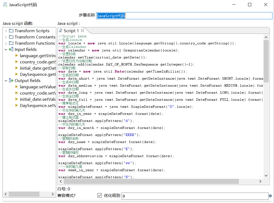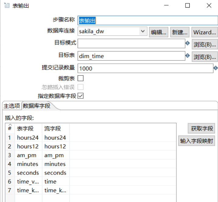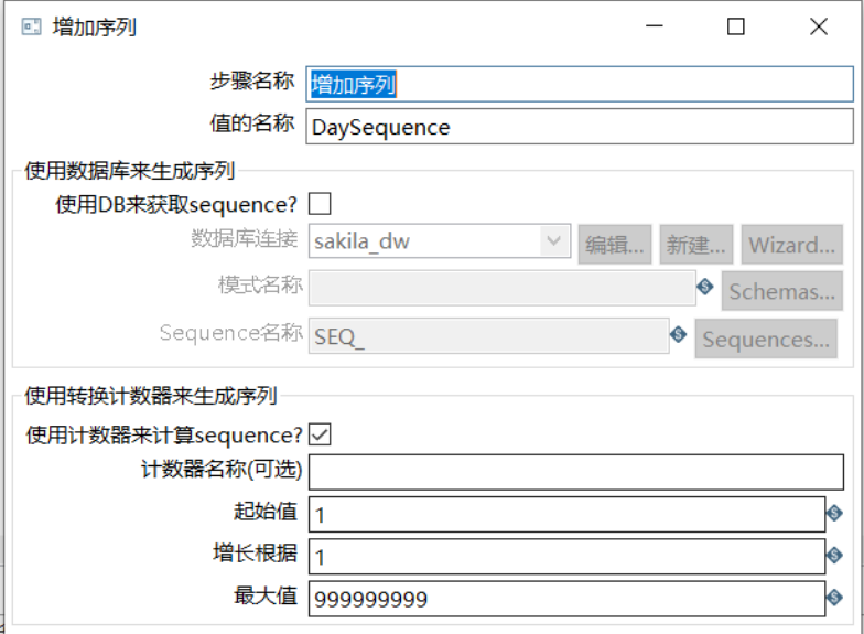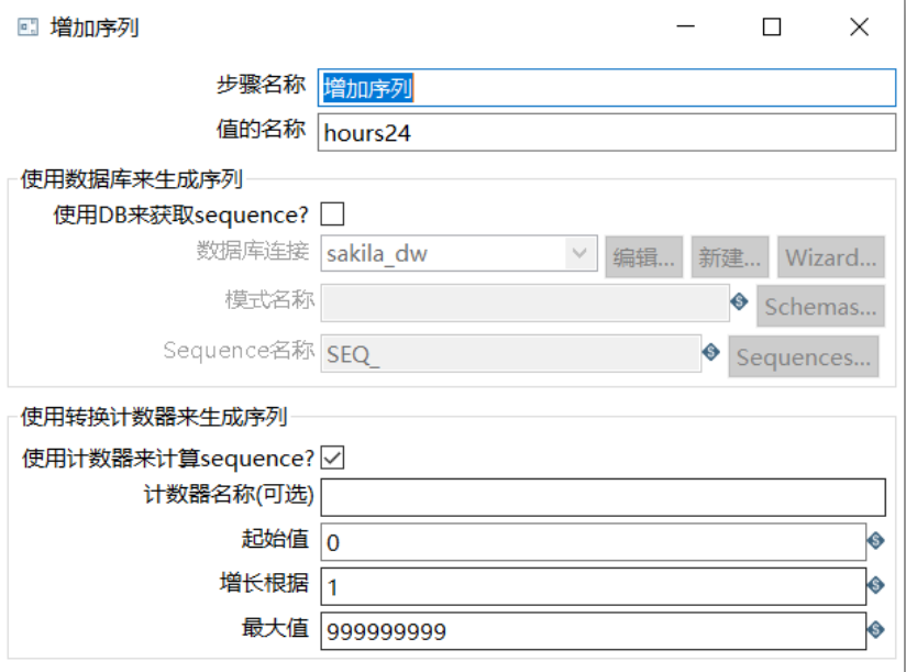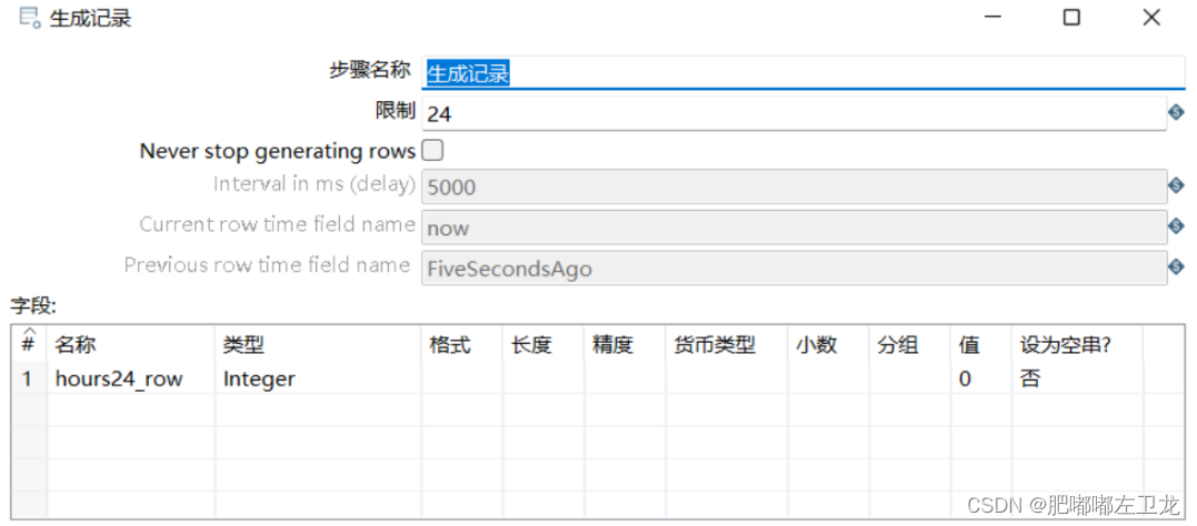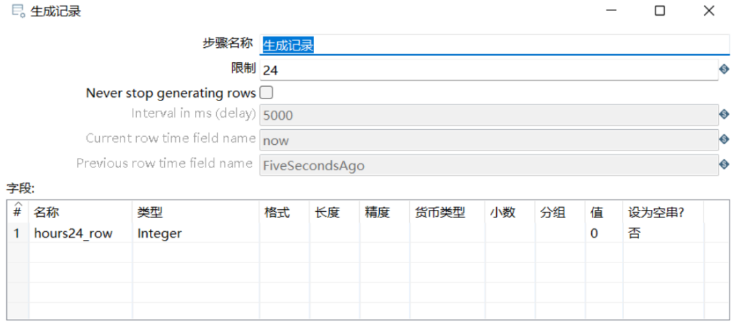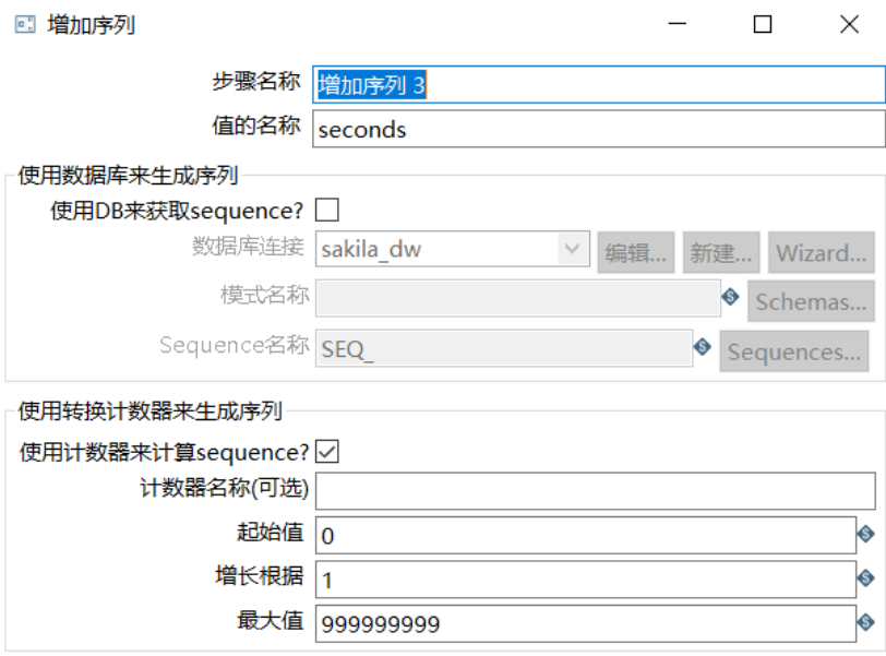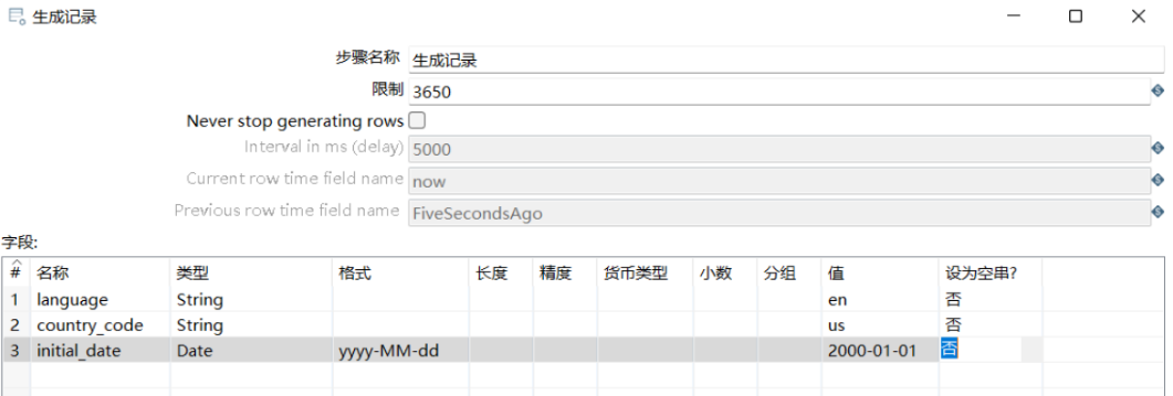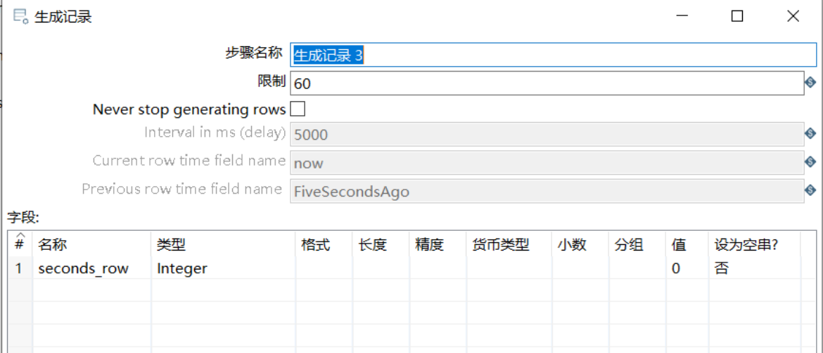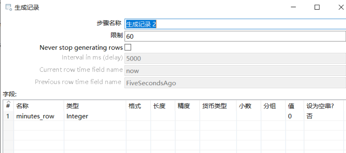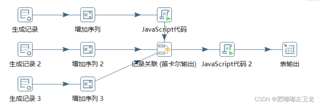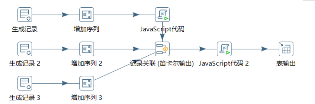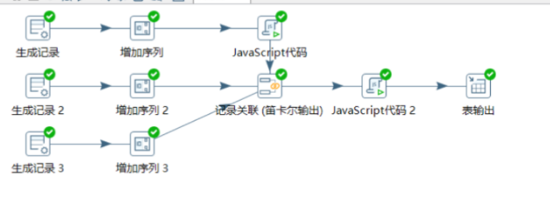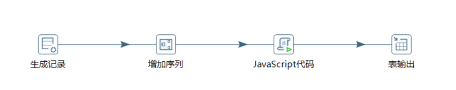 新建一个转换,并添加“生成记录”、“增加序列”、“JavaScript代码”、“表输出”控件