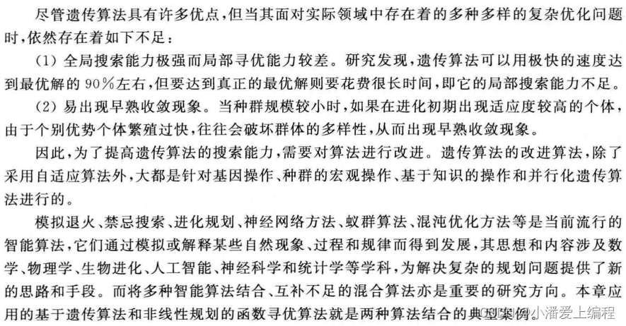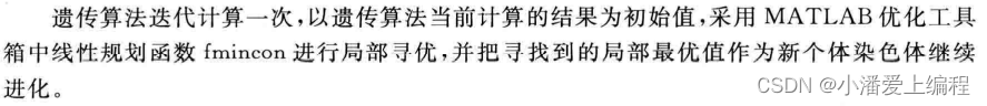 经典非线性规划算法大多采用梯度下降的方法求解,局部搜索能力较强,但是全局搜索能力较弱。而遗传算法采用选择、交叉和变异算子进行搜索,全局搜索能力较强,但是局部搜索能力较弱,一般只能得到问题的次优解,而不是最优解。因此,我在这里结合两种算法的优点,一方面采用遗传算法进行全局搜索,一方面采用非线性规划算法进行局部搜索,以得到问题的全局最优解。