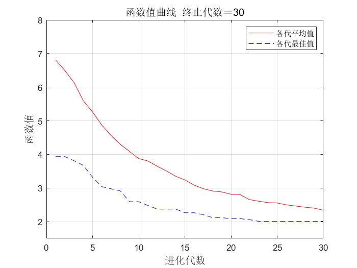 trace=[trace;avgfitness bestfitness]; %记录每一代进化中最好的适应度和平均适应度