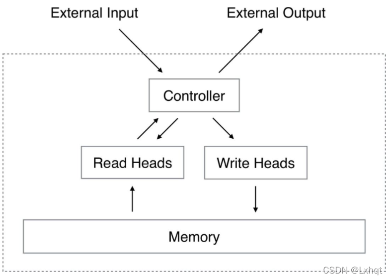 MIMN主要通过NTM来对行为序列进行处理。NTM包括几个关键部分:controller、读写头和memory。其图如下所示: