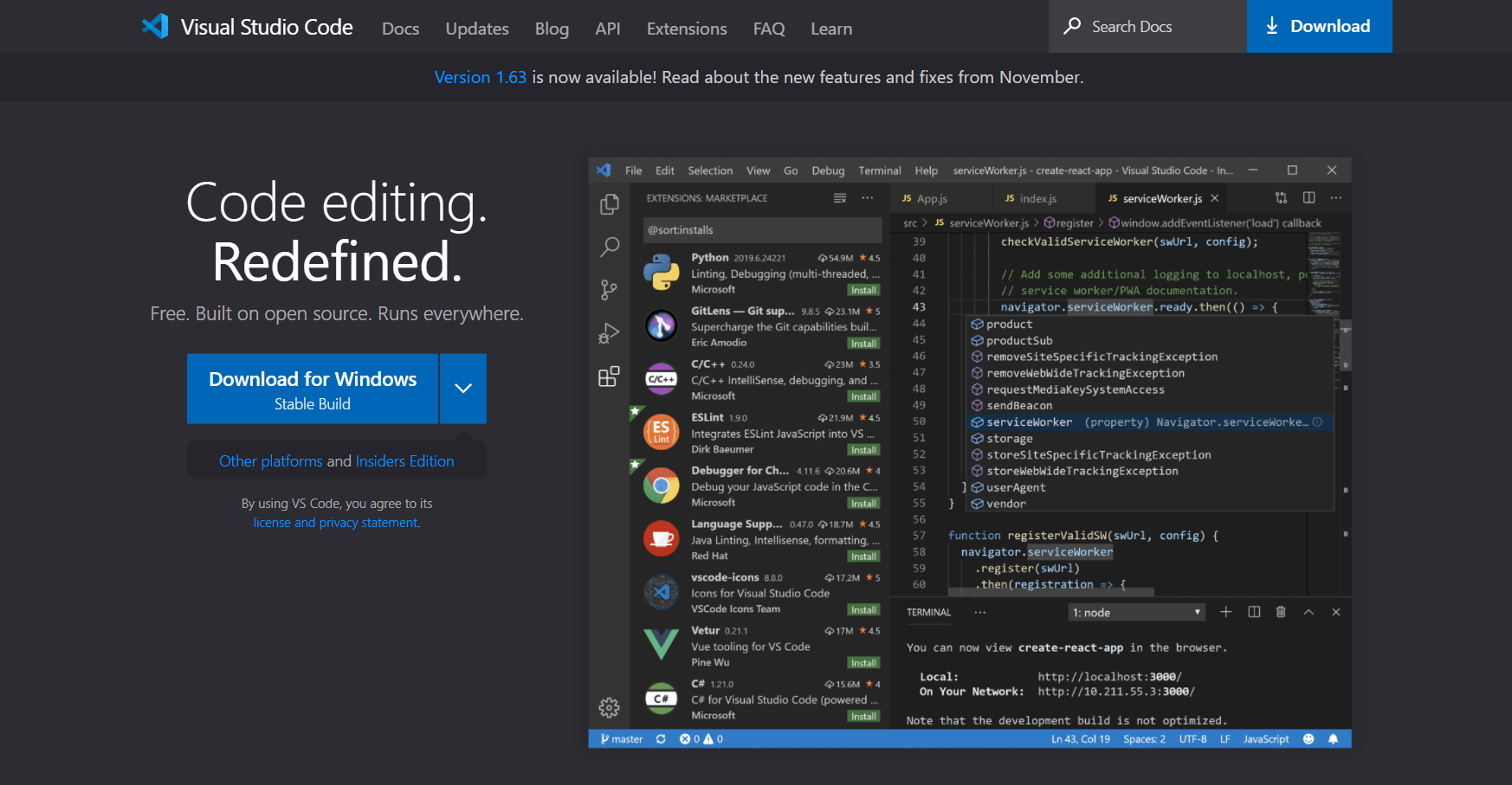 - VS Code:Visual Studio Code - Code Editing. Redefined