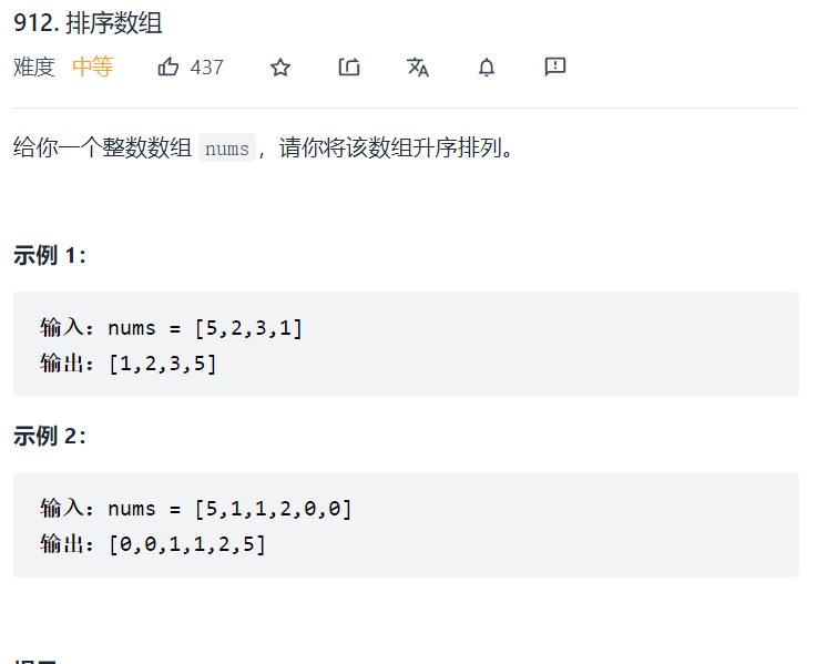 int* sortArray(int* nums, int numsSize, int* returnSize){