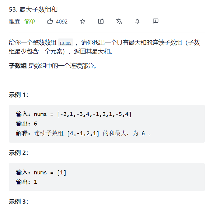 public int maxSubArray(int[] nums) {
