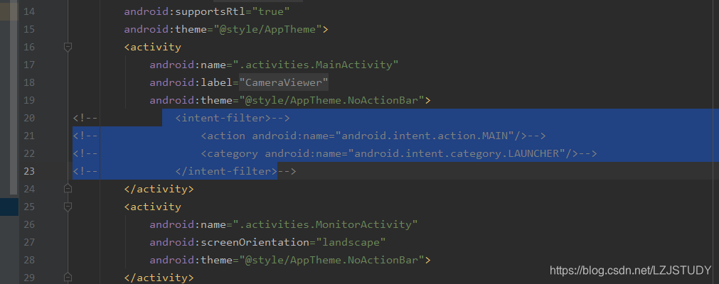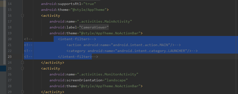 注释掉Manifest.xml文件中的启动设置