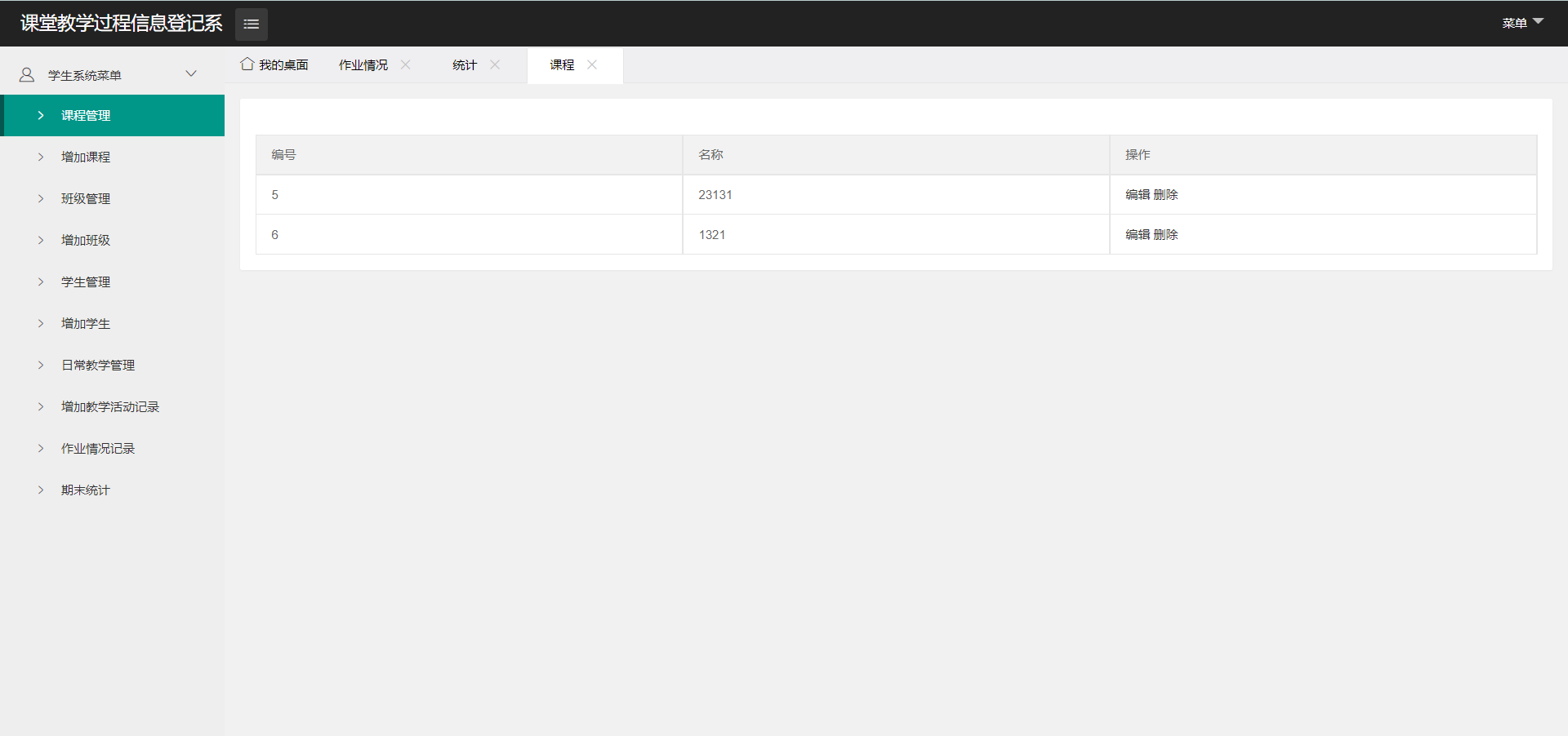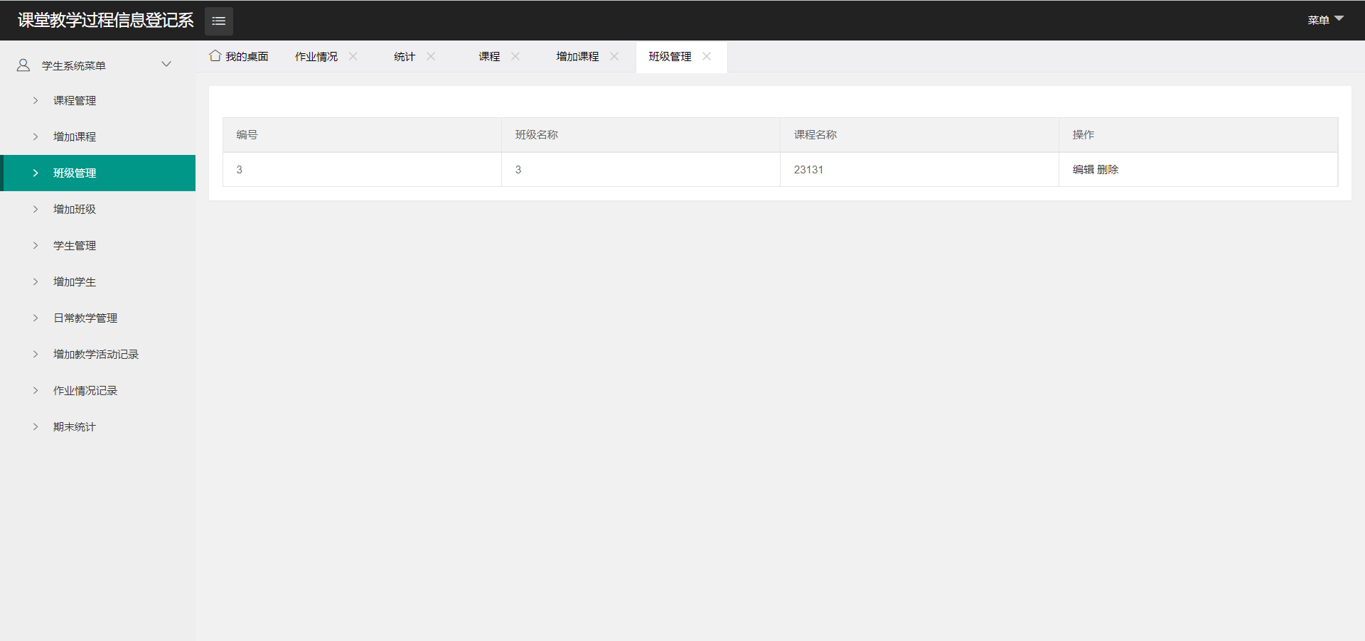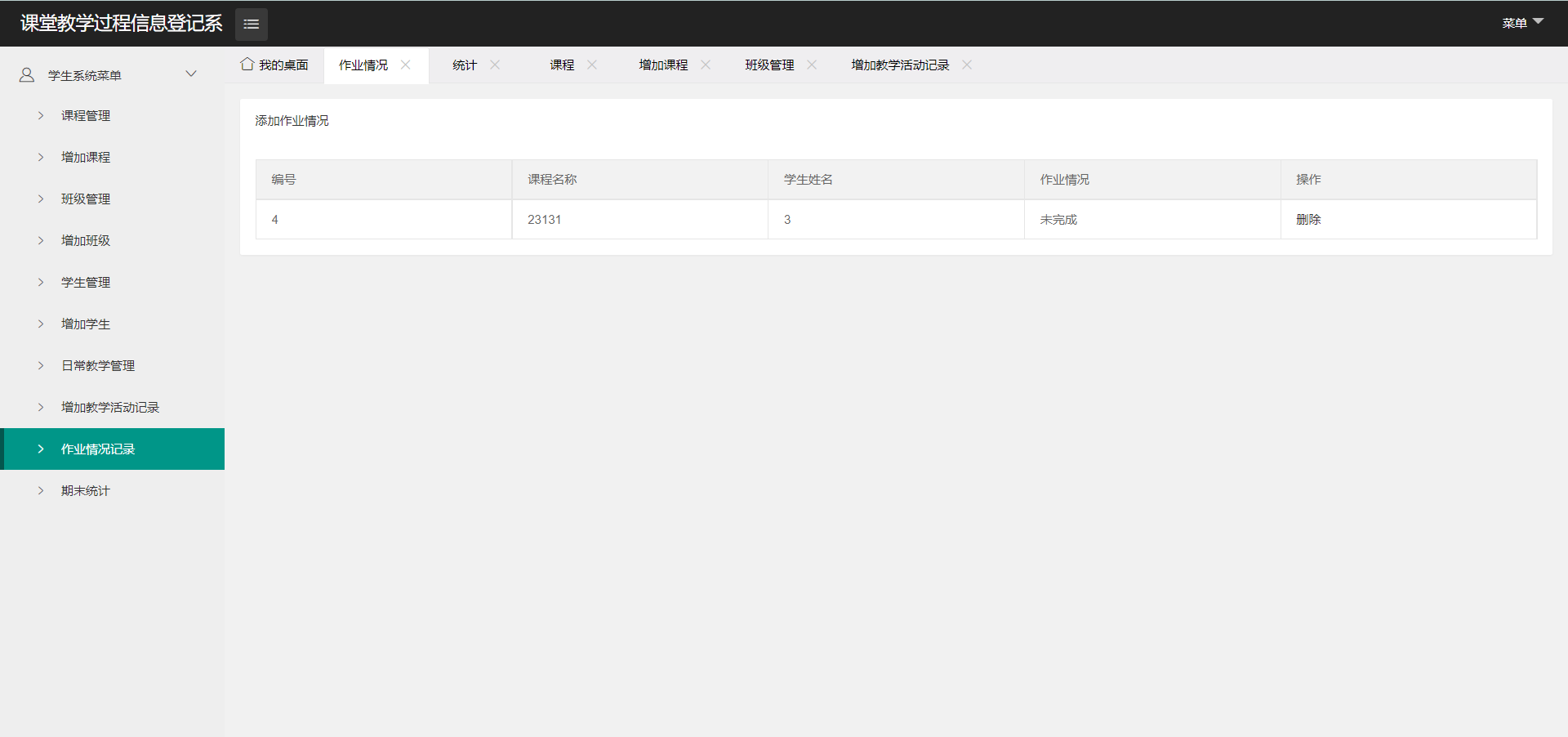 点进每一门课程中,可以对课堂表现,作业情况等进行汇总统计,并附带展示表格