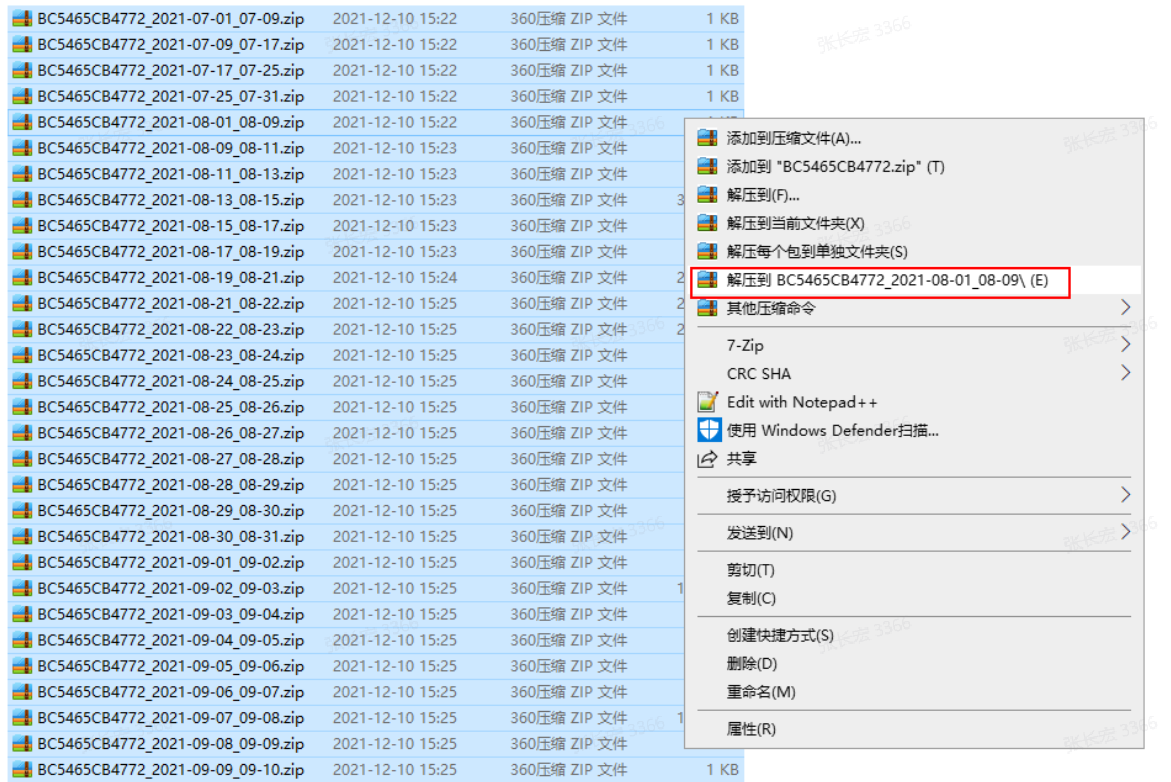 第一步用360解压所有Excel文件到一个文件夹中,选择重新命名
