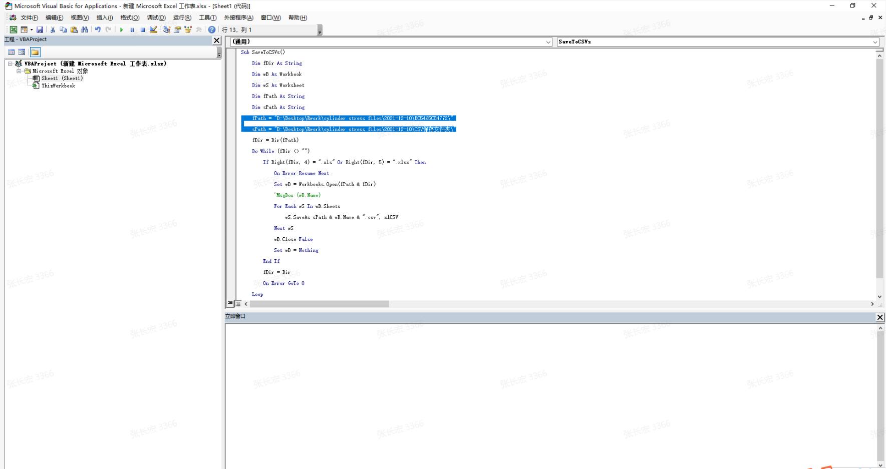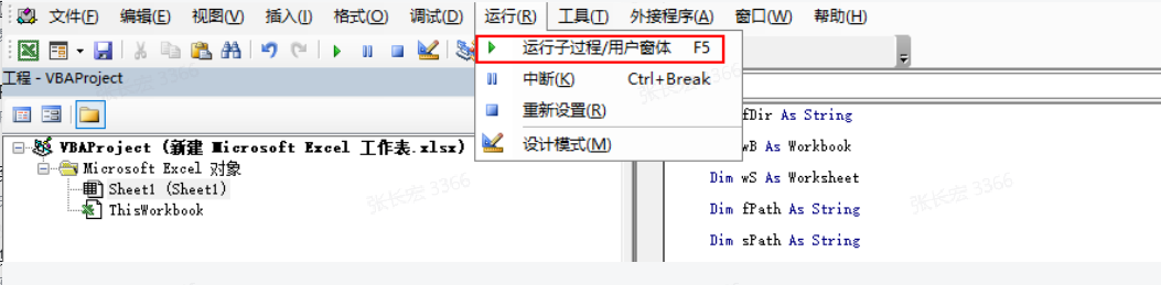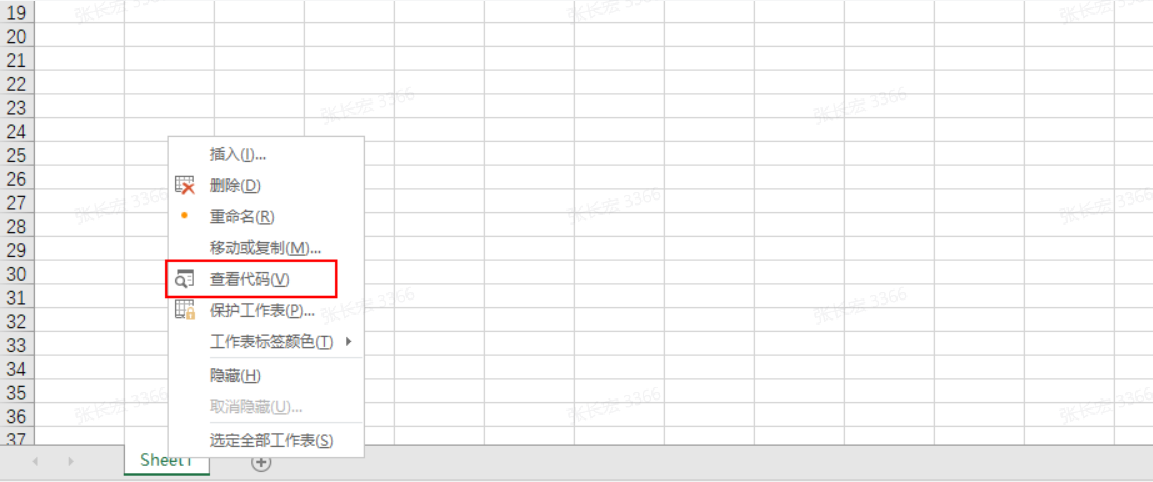 第二步,批量转化Excel文件为CSV文件。不要问为什么要转化为CSV文件,因为数据量巨大的时候,Excel文件用R处理起来非常困难,用Python处理也很困难。。。也许是我渣,以后找到好方法再来分享。项目紧,先得到想要的结果,说远了,拉回来。。。在文件夹中新建一个Excel文件,在sheet1点右键,然后选择查看代码到如下界面