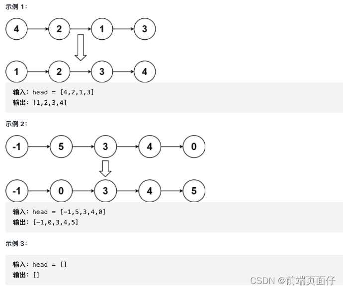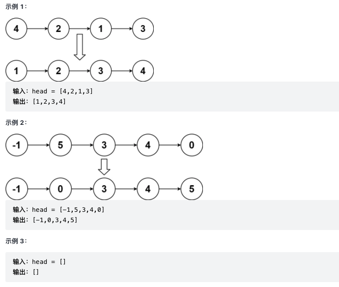 给你链表的头结点 head ,请将其按 升序 排列并返回 排序后的链表 。