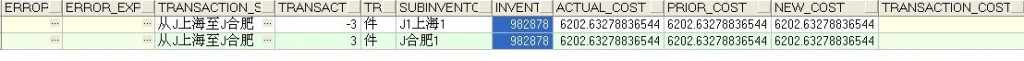 运行查询后可知:由于这次是子库存转移事务,所以本次Transaction Cost为空,不会产生成本变化。