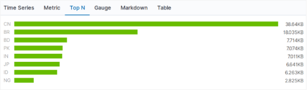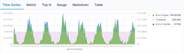 TSVB是一个基于时间序列的数据可视化工具,它可以使用Elasticsearch聚合的所有功能。使用TSVB,我们可以轻松地完成任意聚合方式来展示复杂的数据。它可以让我们快速制作效果的图表: