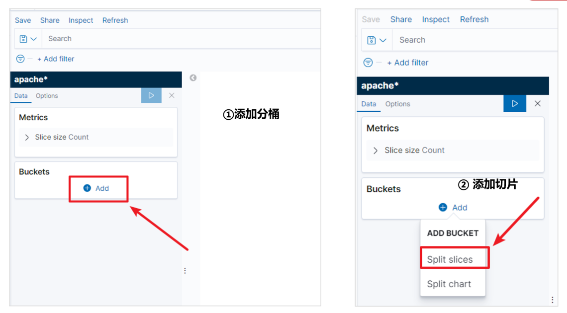 4、添加分桶、分片(还记得吗?我们在Elasticsearch进行分组聚合都是以分桶方式进行的,可以把它理解为分组)