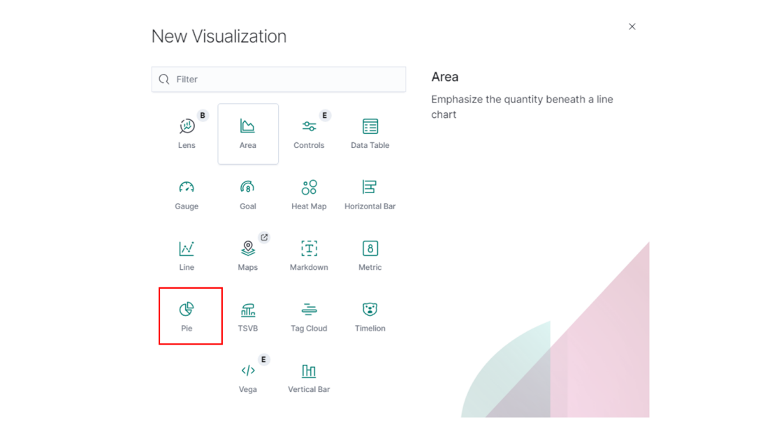 2、选择要进行可视化图形类型,此处我们选择Pie(饼图类型)