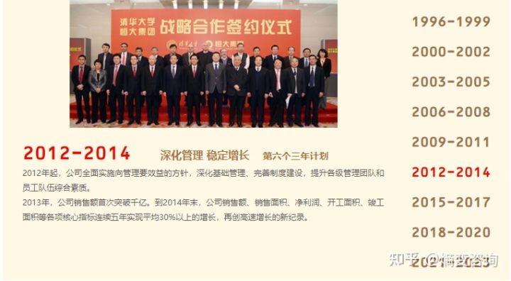 在二十五年的发展历程中,先后制定实施九个“三年计划”,通过高杠杆的前瞻战略规划,以及围绕战略的高效执行,终于成长为中国企业界独树一帜的高危企业。恒大从零开始,发展到今天总资产2.3万亿,总负债近2万亿的巨无霸。