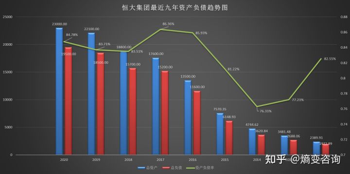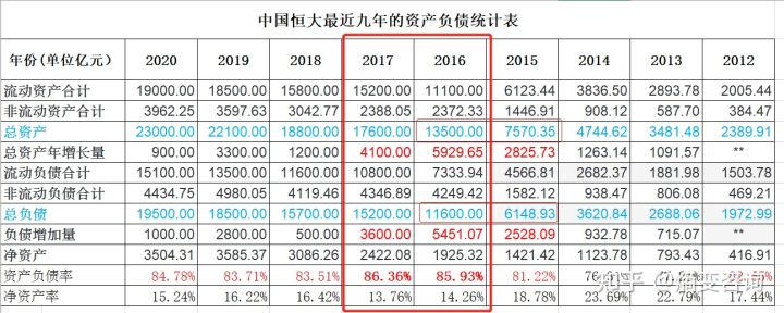 7、2016年和2017年,恒大的资产负债率都是高居不下,就开始对国家命运实行捆绑。2020年的新冠疫情,开启了新的社会风险和时代风险,面对突如其来的刹车,恒大的响应机制就失效了。
