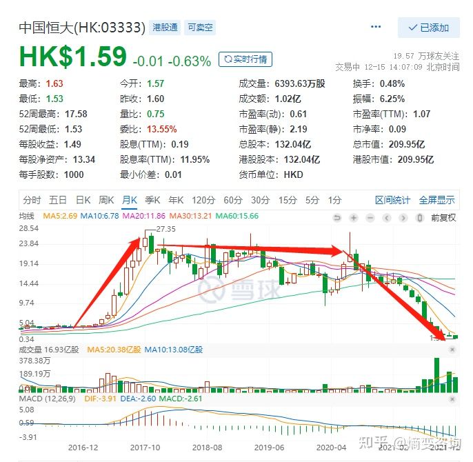10、恒大的巅峰维持不到五年,就从顶层滑落,市值也从高峰期3610多亿跌倒现在的200亿左右,市值蒸发了17倍之多。