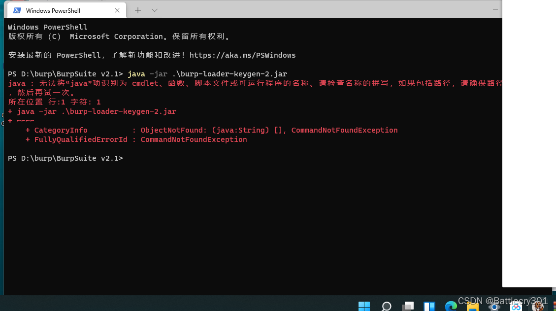 输入java -jar .\burp-loader-keygen-2.jar 然后回车键