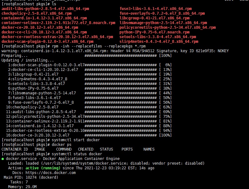 2,把docker及相关的依赖rpm包传到服务器上某个自己建的目录下,进入目录直接运行命令