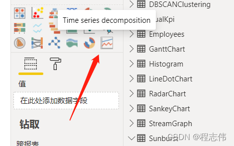 5. 单击“可视化”窗格中的“时间序列图”图标, 在画布区域会出现该图的模板, 由于没有填入数据, 因此图是灰色的。