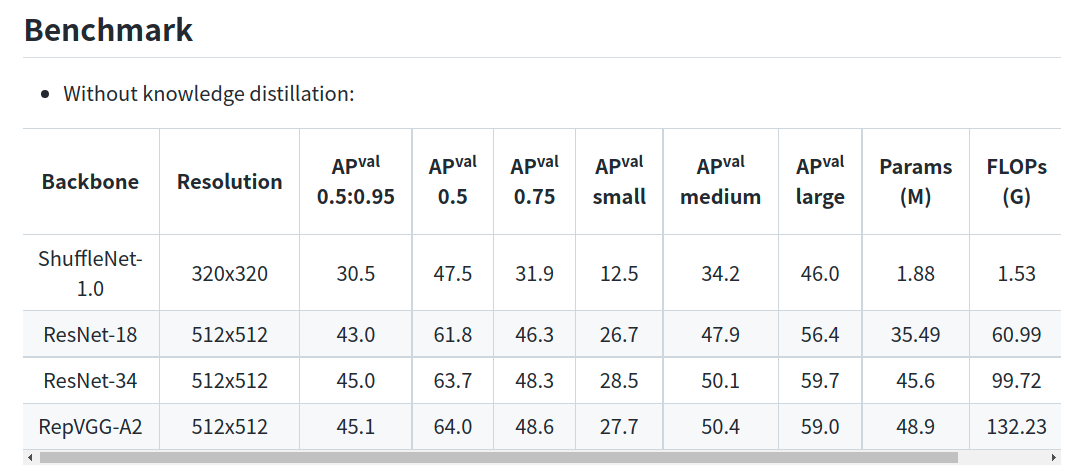 这个项目是偶然间看到了,其实也不算是轻量型吧,因为提供的各个模型参数量其实还是挺大的,但是因为使用的backbone都是偏轻量的,所以还是决定把它算进来。