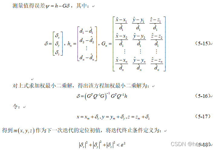 以下是最小二乘算法(Z轴精度不高,可结合泰勒级数展开加权使用(研究了好久论文才搞出来))