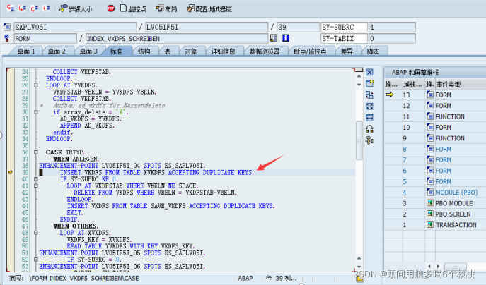 写入索引表VKDFS动作: INSERT VKDFS FROM TABLE XVKDFS ACCEPTING DUPLICATE KEYS.
