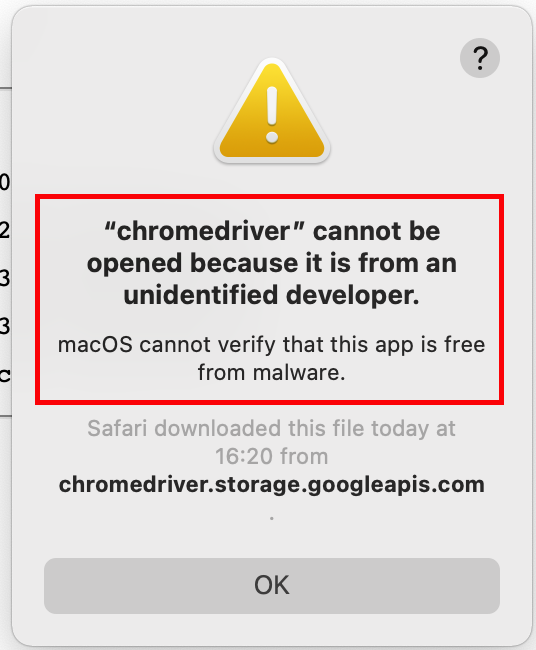 # xattr -d com.apple.quarantine chromedriver