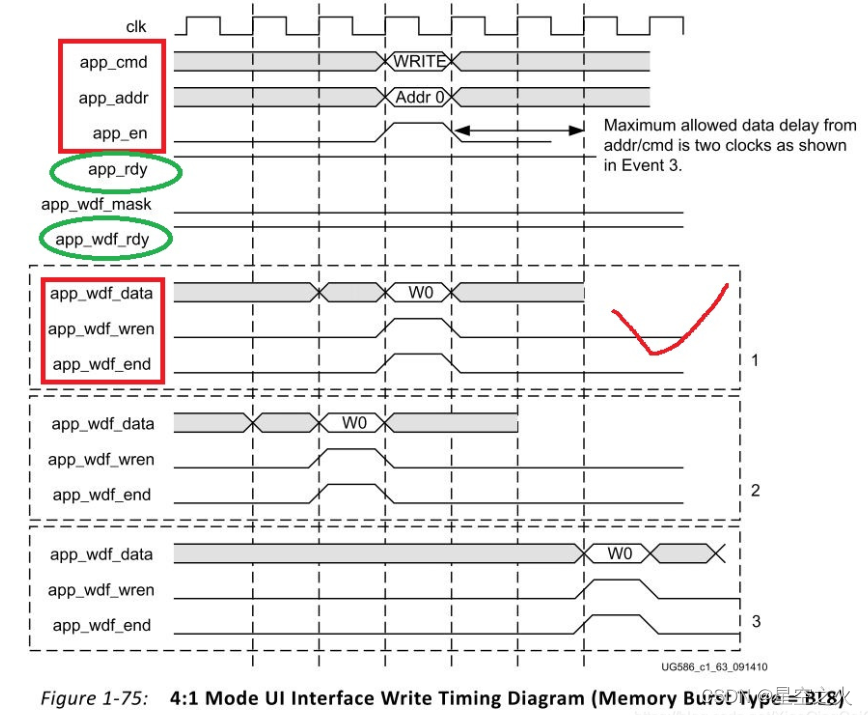 .app_wdf_end (app_wdf_end), // input 4:1模式下与app_wdf_wren相同,2:1模式下每两个app_wdf_wren,使能一次 app_wdf_en。这个可以理解可参考UG586数据手册P169 Figure 1-78/ Figure 1-79