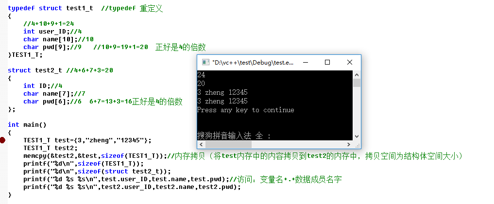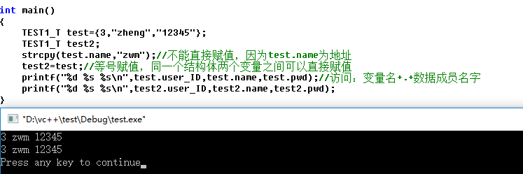 结构体访问:访问的时候用变量名+.+数据成员名字。