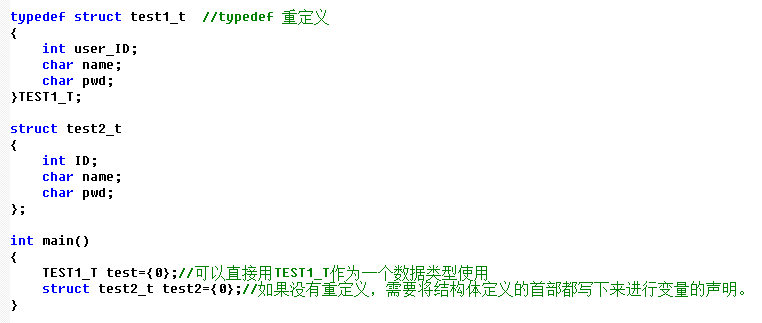 typedef:对结构体进行重命名,重命名完可以直接使用,相当于一个自己定义的新数据类型。