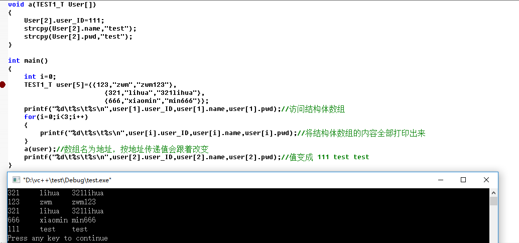 结构体数组初始化,单个结构体访问,以及结构体数组全部访问如下图所示:
