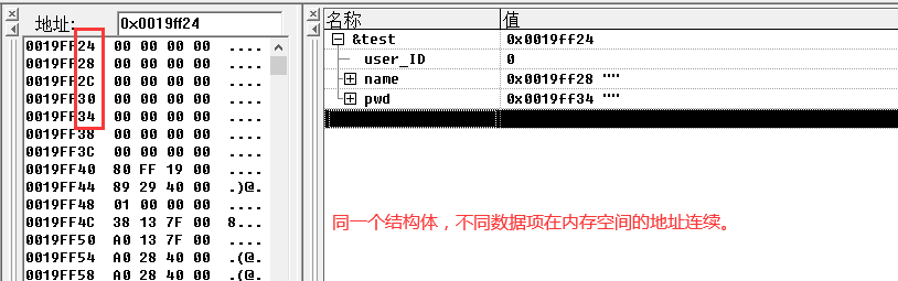 地址:和数组一样,结构体在内存空间的地址是连续的。