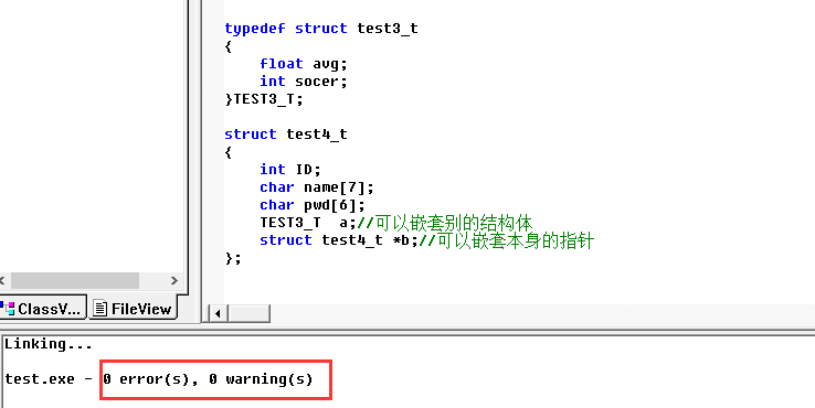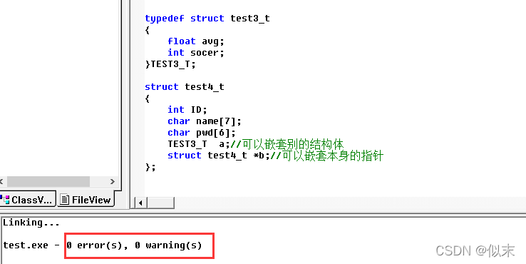 结构体嵌套:可以嵌套别的结构体,可以嵌套本身的指针,但是不能嵌套本身(因为无法计算内存空间)