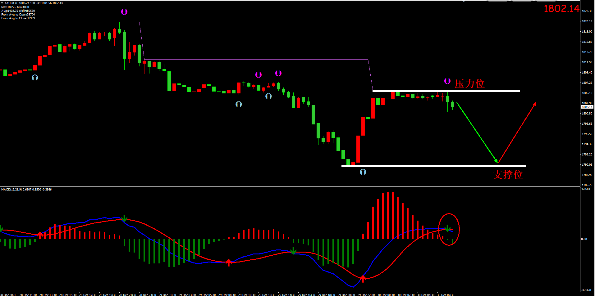 2021年12月30日黄金评论黄金多空争夺1800整数关口,关注黄金支撑位价格反弹。