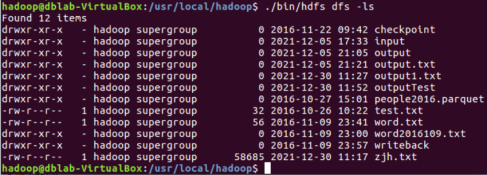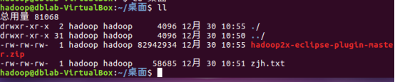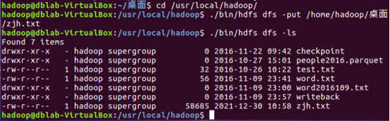 将zjh.txt上传至hdfs中,使用-ls命令查看: