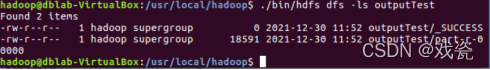使用-ls命令查看outputTest文件夹里存放的文件: