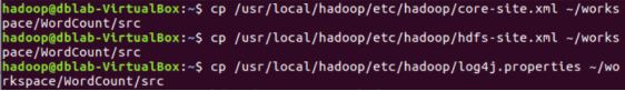 cp /usr/local/hadoop/etc/hadoop/core-site.xml ~/workspace/WordCount/src