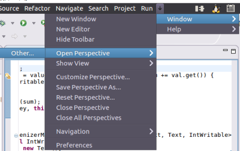 打开Eclipse软件,点击Window -->Open Perspective --> Other: