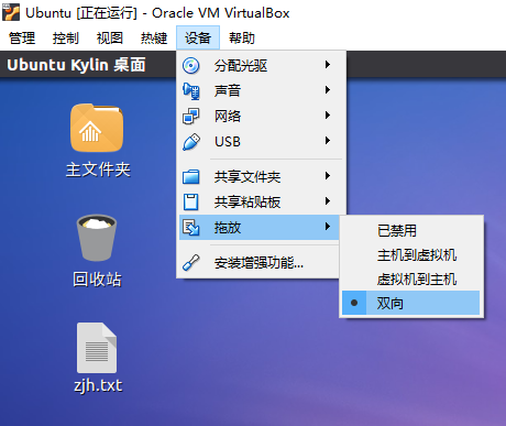 在百度中收集各大诗人的英文简介,存放于文本中并命名为zjh.txt。在VirtualBox软件中安装增强功能,并使用其双向拖拉文件功能将需要进行词频统计的zjh.txt传至hadoop中的桌面。