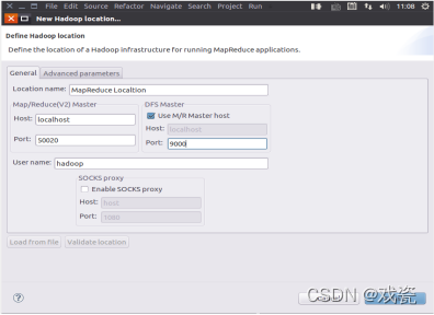 在生成的Map/Reduce视图中鼠标右键选择New Hadoop Location: