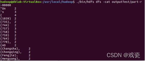 $ ./bin/hdfs dfs -cat outputTest/part-r-00000