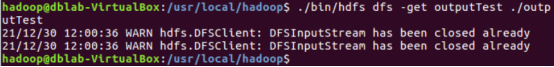 $ ./bin/hdfs dfs -get outputTest ./outputTest