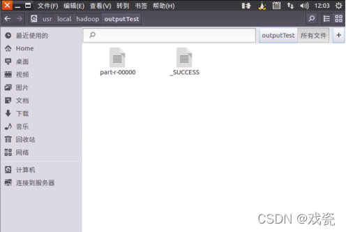 查看/usr/local/hadoop是否存在outputTest文件夹,打开该文件夹