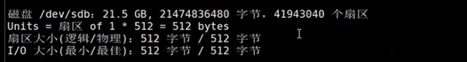 创建好新的磁盘以后使用fdisk -l 或者fdisk /dev/sdb 命令查看一下,发现多了一块sdb 的新的磁盘。